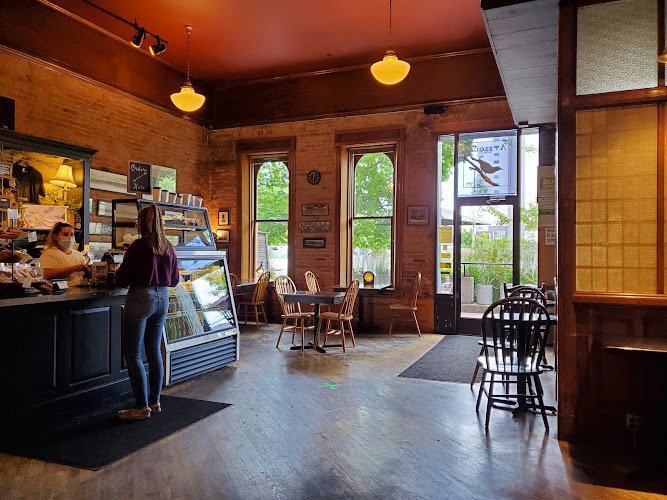 Cozy, brick-walled coffee & gift shop with cafe fare, local roasts & loose teas sold in bulk.