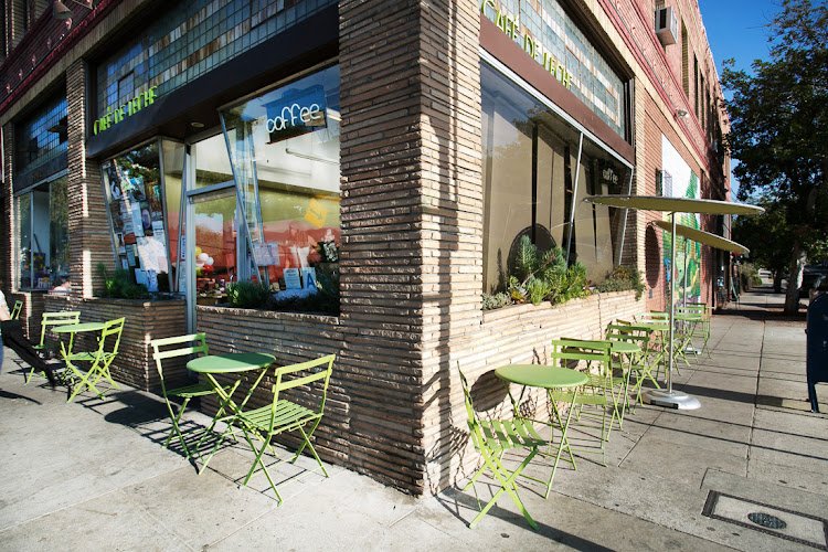 Indie coffee shop brewing Latin-inspired drinks like cafe de leche in a colorful, casual setting.