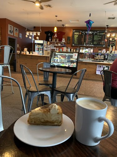 An array of classic coffee shop beverages, breakfast, & ice cream in a modern space with warm decor.