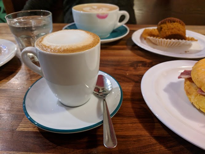 Comfy cafe specializing in artisan coffee & craft brews in a convivial atmosphere with a patio.