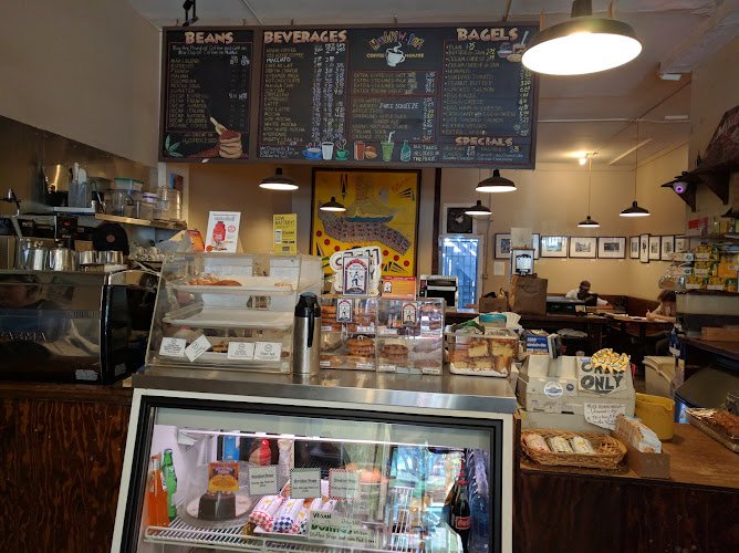 Coffee shop offers counter service, pastries & bagels in a basic space with wooden tables.