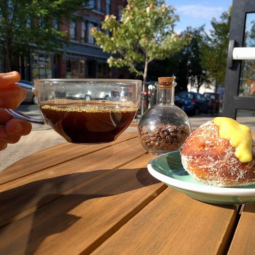 Modern coffee tasting bar offering a weekly rotating menu of 6 or more single-origin coffees.
