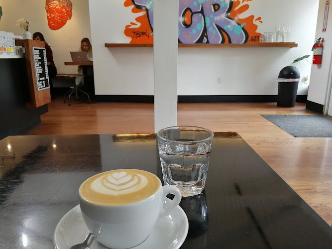 Modern espresso bar brewing & selling house-roasted beans. Snacks & outdoor seating available.