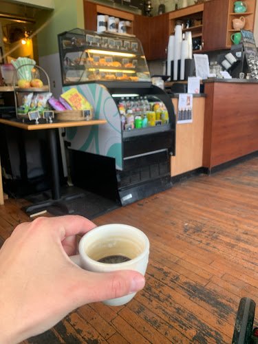Cafe & bookseller boasting free WiFi, live music & art shows in a brick storefront with patio.