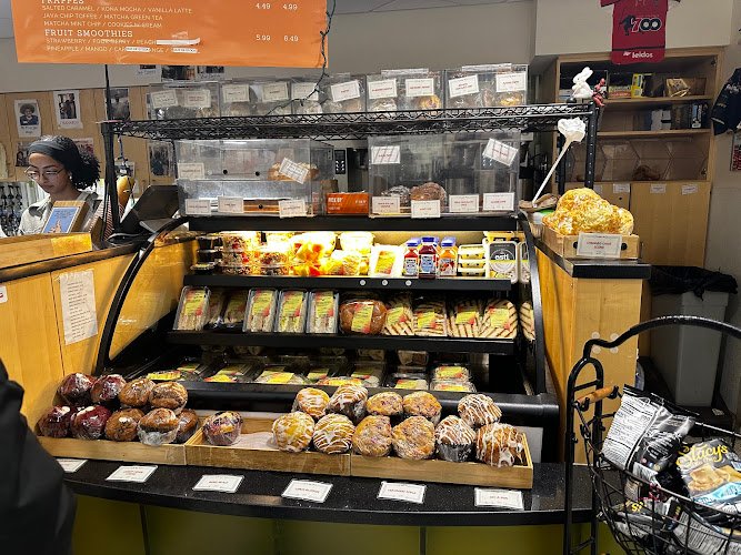 Compact campus counter serve providing a range of hot & iced espresso drinks, pastries & snacks.