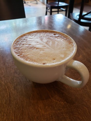Coffee shop with wood floors & tin ceiling featuring specialty coffees, locavore fare, music & arts.